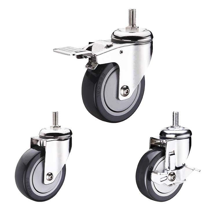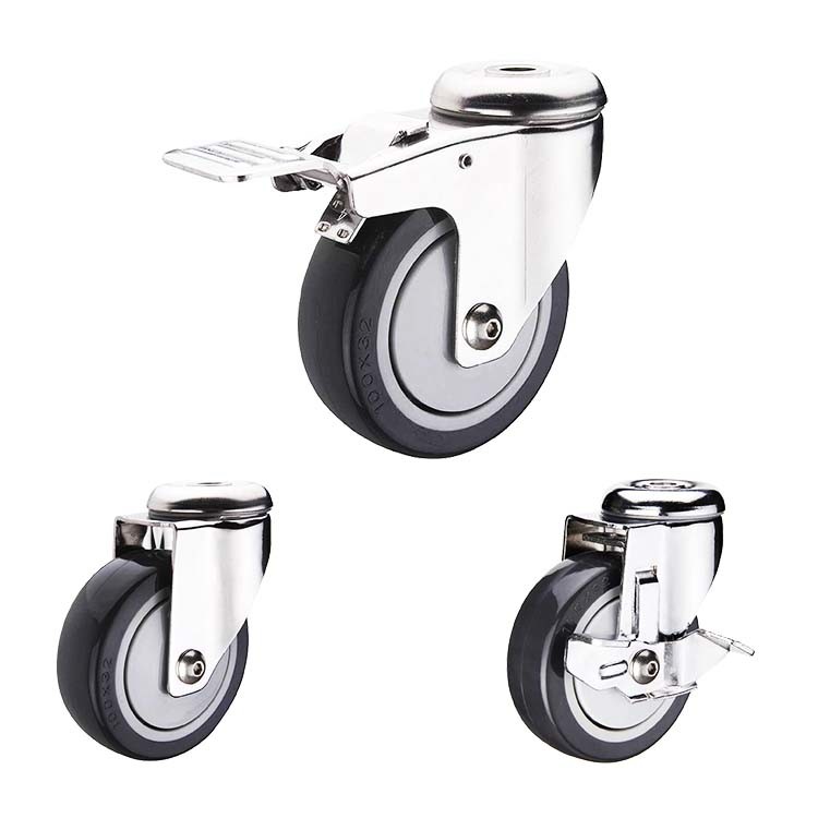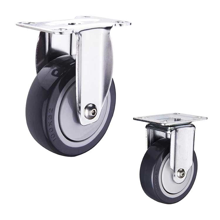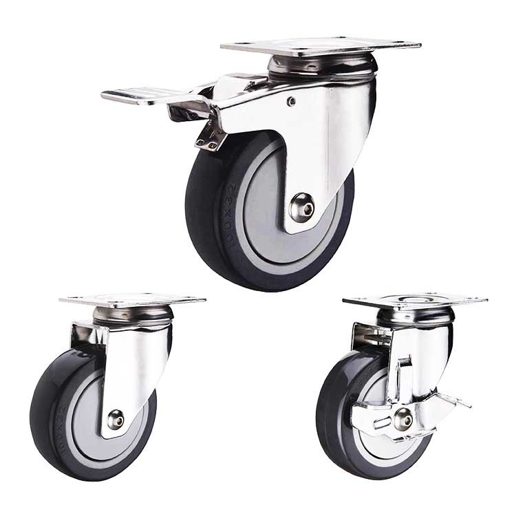 x| Nome do produto | Rodízios de serviço médio giratórios de poliretano com freio total de alta carga de 300 libras e 5 p | Estilo | Plutônio cinzento dos rodízios médios do dever |